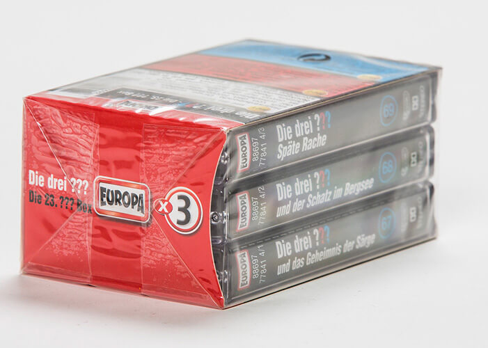 Zum späteren bequemen Öffnen der Cellophanierung bringen wir selbstverständlich auch einen Aufreißfaden mit an. Alle unsere Maschinen verfügen zusätzlich über eine präzisions kontrollwaage und zwei Sticker-Automaten.
